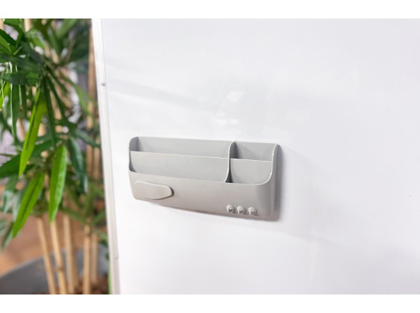 Plaats alle whiteboard accessoires in een hulpmiddel. Onze magnetische pennenhouder, ook wel magnetische smartbox genoemd, is van hoge kwaliteit en heeft een sterke magneet aan de achterzijde waarmee je alle stiften, magneten en overige accessoires direct op jouw whiteboard kunt opbergen. De kunststof pennenhouder heeft een strakke afwerking waardoor het mooi aansluit bij jouw voorbedrukte whiteboard.
